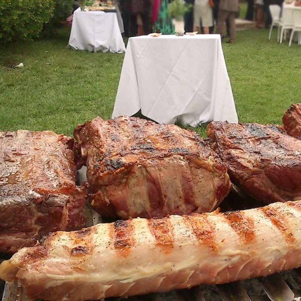 - Piezas a la brasa (parrillada) : Cabrito, conejo, pollo, cochinillos, chuletas (cordero, cerdo, ternera), tira de asado, vacío, entrañas, mollejas, chorizos criollos, matambre, brochetas mixtas.